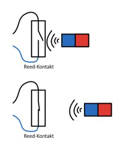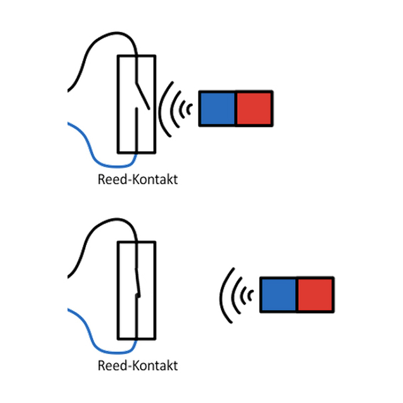 Zur Absicherung von Klappfenster, Glasdächer oder Klappen verwendbar. Dieser Magnetschalter kann sowohl als Öffner (NC) als auch als Schließer (NO) angeschlossen werden.