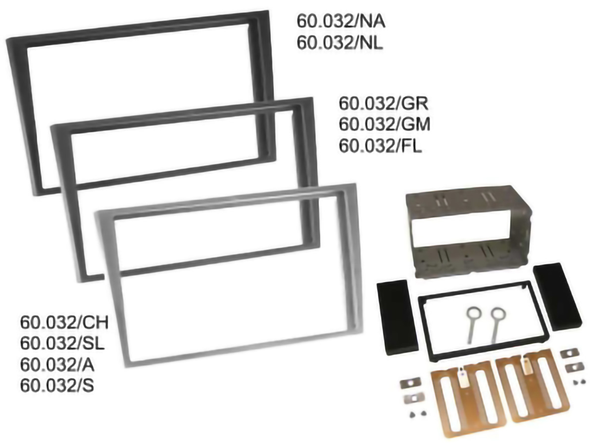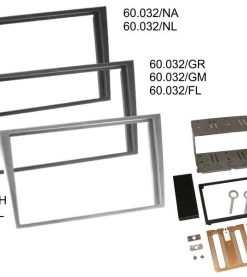 Komplettset aus Metallrahmen, Halterungen, Montagematerial und Radioblende.