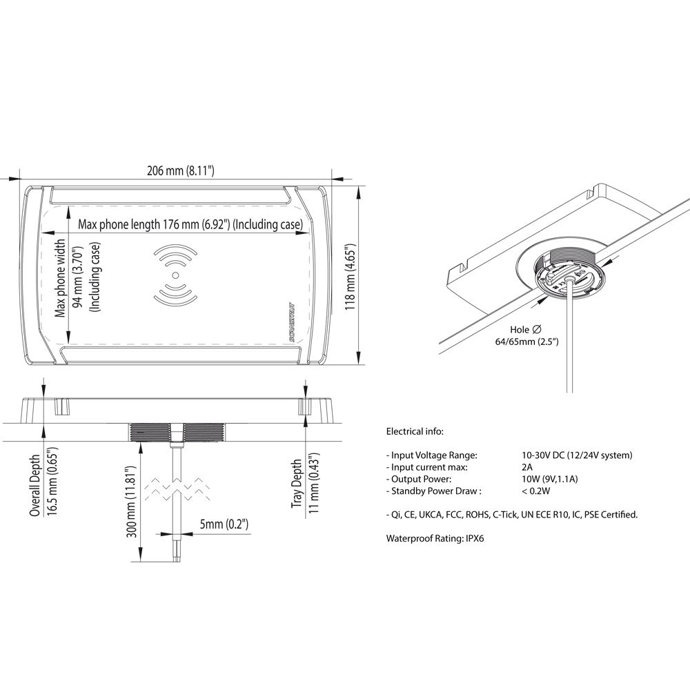Die SC-CW-08F ist eine der bequemsten Möglichkeiten, Ihr Handy an Bord zu speichern und drahtlos aufzuladen, egal ob drinnen oder draußen! Die Halterung kann auf jeder flachen Oberfläche angebracht werden und eignet sich perfekt für die Verwendung auf der Bootskonsole.